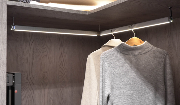Đèn LED thường được thiết kế dạng thanh gắn vào nóc hoặc 2 bên thành tủ, với ánh sáng vàng hoặc trắng vàng dịu mắt.
