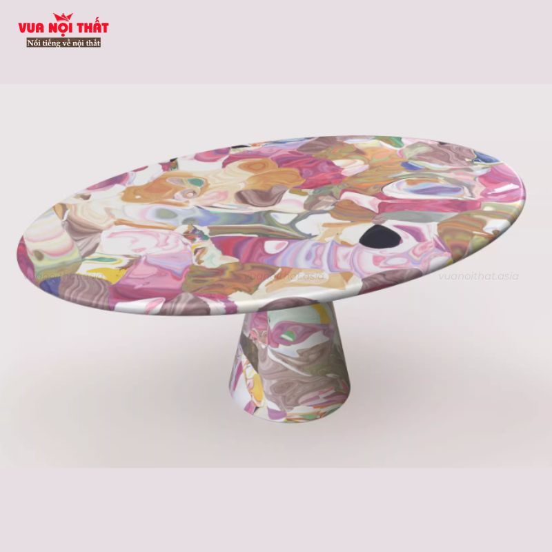 Bàn decor composite họa tiết độc đáo CPS22 là mẫu bàn sofa, bàn ăn độc đáo, hiện đại. Mẫu bàn decor này được chế tác từ chất liệu composite cao cấp, bền chắc, chống cong vênh và dễ vệ sinh. Điểm nổi bật nhất là phần bề mặt được sơn tay họa tiết trừu tượng, mới lạ, độc đáo và đầy cá tính. Mỗi đường nét màu sắc đều toát lên sự sáng tạo, biến chiếc bàn không chỉ là nội thất mà còn là một tác phẩm nghệ thuật thực thụ. Với thiết kế chân trụ vững chãi kết hợp mặt bàn hình oval sang trọng, bàn decor CPS22 phù hợp cho phòng khách, phòng trưng bày hay cả phòng ăn. Nội dung bài viết dưới đây, hãy cùng Vuanoithat tìm hiểu chi tiết về bàn decor nhập khẩu họa tiết độc đáo CPS22 được quan tâm nhiều hiện nay.