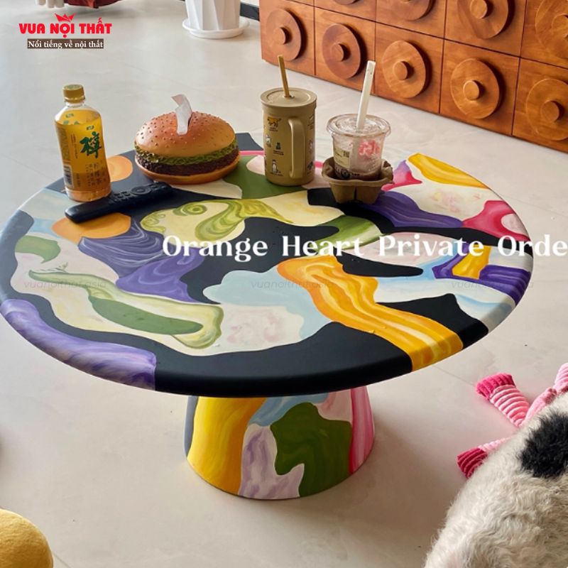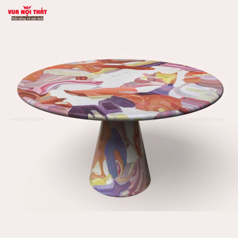 - Họa tiết sơn tay độc đáo: Điểm nhấn đặc biệt của bàn là lớp sơn tay trừu tượng, phối hợp nhiều gam màu nghệ thuật. Mỗi mẫu bàn được cung cấp ra thị trường đều có sự khác biệt, như một tác phẩm nghệ thuật độc bản.