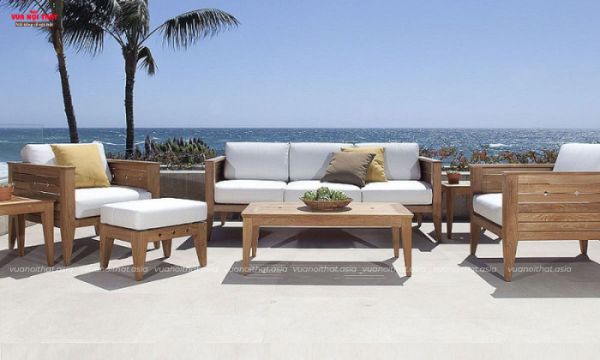 - Khu vực ngoài trời: Không chỉ giới hạn trong không gian trong nhà, bàn ghế sofa gỗ còn rất phù hợp với không gian ngoài trời như ban công, sân vườn,…