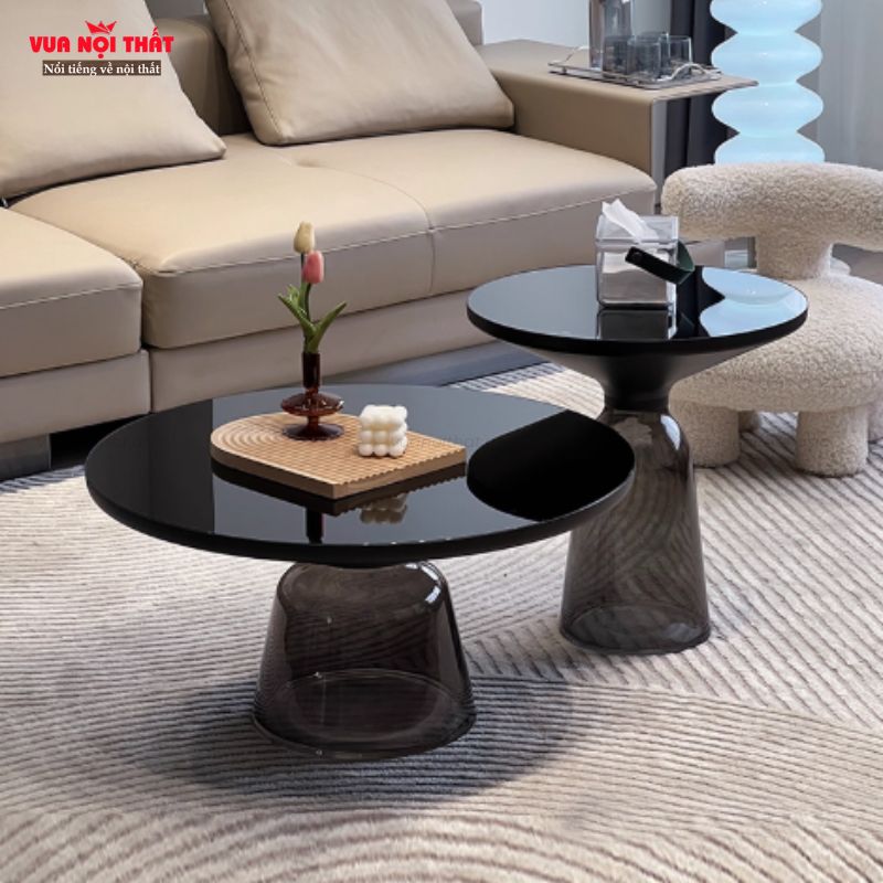- Mặt bàn bằng kính trong suốt: Thiết kế kính trong suốt mang đến cảm giác không gian rộng hơn, giúp khu vực phòng khách thoáng và sáng. Chất liệu kính dày, chịu lực tốt, dễ lau chùi và giữ được vẻ đẹp bền lâu.