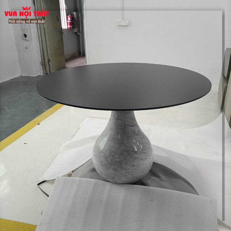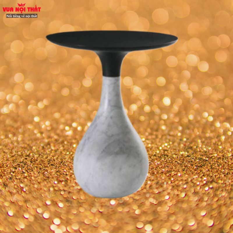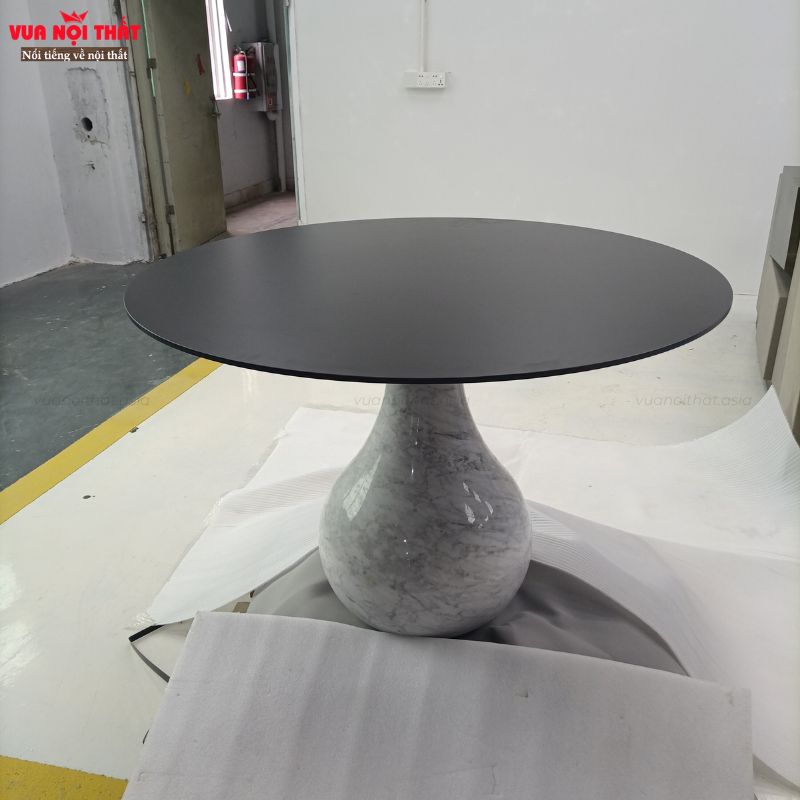 - Thiết kế hiện đại, độc đáo: Bàn được thiết kế với dáng tròn nhỏ gọn, kết hợp phần chân đá uốn cong hình giọt nước tạo nên sự mềm mại và đầy tính nghệ thuật.