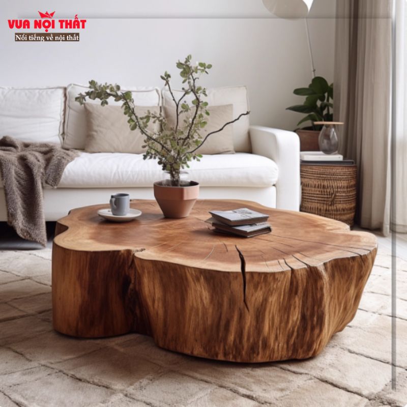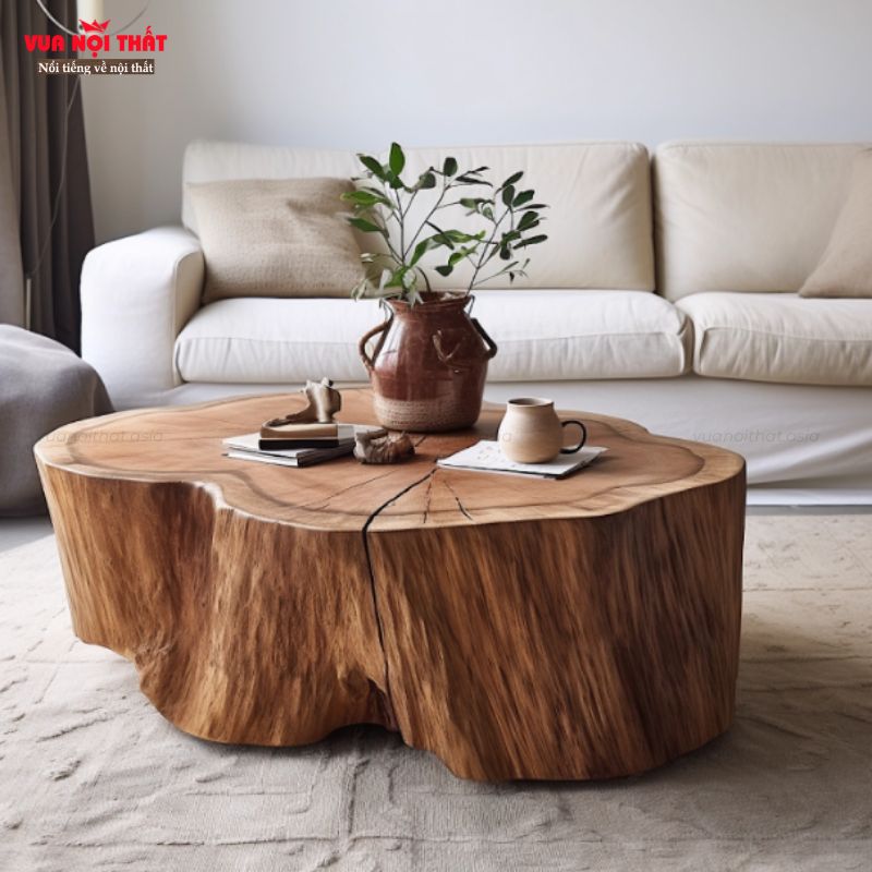 - Tính thẩm mỹ cao: Bàn trà giữ nguyên nét mộc mạc của gỗ tự nhiên, khi kết hợp cùng sofa sẽ tạo điểm nhấn sang trọng, ấm cúng cho không gian. Ngoài công năng chính, bàn còn có thể dùng để đặt bình hoa, tách trà hay vật trang trí.