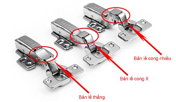 – Bản lề cong vừa: dành cho cánh tủ nằm giữa 2 khoang tủ