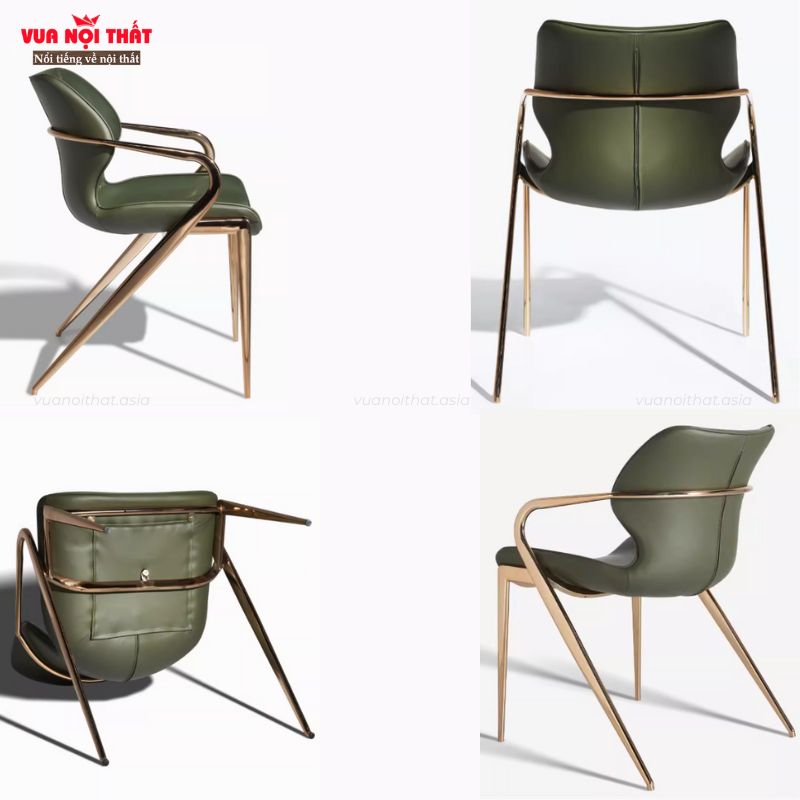 Ghế ăn bọc da chân kim loại cao cấp GA12 là mẫu ghế ăn hiện đại được nhiều gia chủ lựa chọn cho không gian phòng ăn sang trọng. Ghế ăn bọc da GA12 sở hữu kiểu dáng cong mềm mại, phần lưng và tay ghế được thiết kế liền khối, ôm trọn cơ thể người ngồi. Ghế được bọc da yên ngựa cao cấp với nhiều gam màu thời thượng như xám, nâu da bò, đen và xanh rêu, dễ dàng phối hợp với nhiều phong cách nội thất khác nhau. Phần chân ghế sử dụng thép cacbon mạ điện bền chắc và có khả năng chịu lực tốt. Nội dung bài viết dưới đây, hãy cùng Vuanoithat tìm hiểu chi tiết về ghế ăn bọc chân kim loại GA12 được lựa chọn nhiều hiện nay.