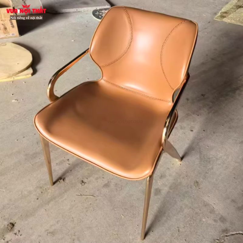 Điểm nhấn nổi bật của ghế ăn bọc da hiện đại GA12 nằm ở hệ chân kim loại làm từ thép cacbon mạ điện, kết cấu vững chắc, chịu lực tốt, chống gỉ sét hiệu quả. Chân ghế có các tùy chọn màu vàng hồng, bạc hoặc đen, giúp tổng thể ghế trở nên sang trọng, hiện đại và dễ phối hợp với bàn ăn, sàn nhà cũng như phong cách nội thất tổng thể. Ghế ăn bọc da nhập khẩu chất lượng cao GA12 không chỉ là vật dụng sử dụng hằng ngày mà còn là điểm nhấn thẩm mỹ cho không gian sống.