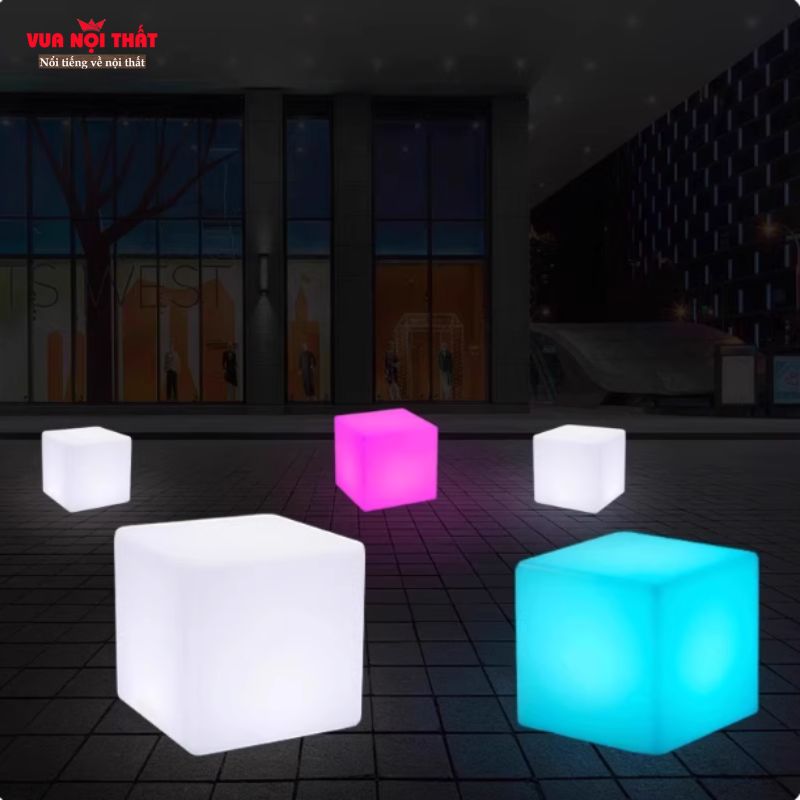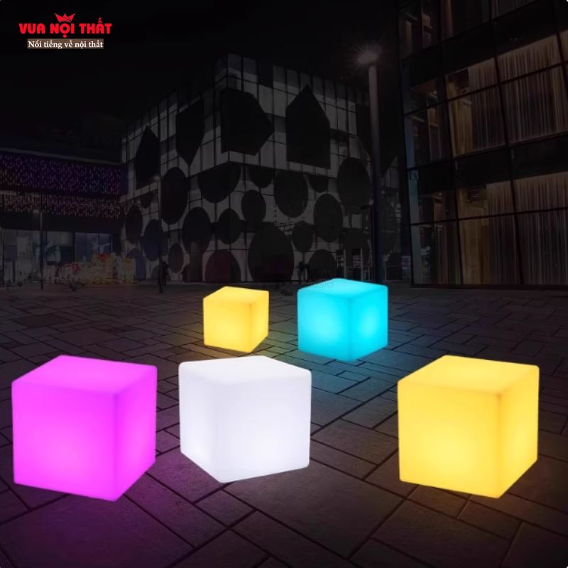 Ghế ngồi phát sáng hình khối nhiều màu BGNT12 là mẫu ghế decor hiện đại, mang đến vẻ đẹp độc đáo cho mọi không gian nhờ thiết kế dạng khối vuông tối giản nhưng vô cùng nổi bật. Mẫu ghế này được làm từ nhựa PE cao cấp – loại vật liệu nổi tiếng với độ bền cao, khả năng chịu lực tốt, chống thấm nước và chống va đập hiệu quả. Nhờ đó, ghế có thể sử dụng cả trong nhà lẫn ngoài trời mà không lo hư hỏng hay phai màu theo thời gian.