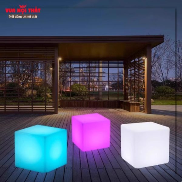 - Công dụng: Ghế ngồi phát sáng hình khối nhiều màu BGNT12 giúp tạo điểm nhấn độc đáo cho không gian, mang lại hiệu ứng ánh sáng sinh động và hiện đại cho quán cafe, homestay, sân vườn hay sự kiện.