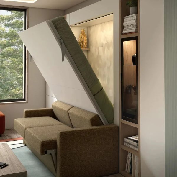 Với thiết kế tối ưu, phần giường được ẩn khéo dưới khung sofa hoặc phần tường – sàn, và chỉ cần thao tác nhẹ nhàng để nâng lên hoặc hạ xuống. Người dùng nhanh chóng biến chiếc giường ngủ rộng rãi thành sofa. Kiểu giường kết hợp sofa nơi bạn muốn tận dụng tối đa diện tích mà vẫn giữ được vẻ sang trọng, gọn gàng.