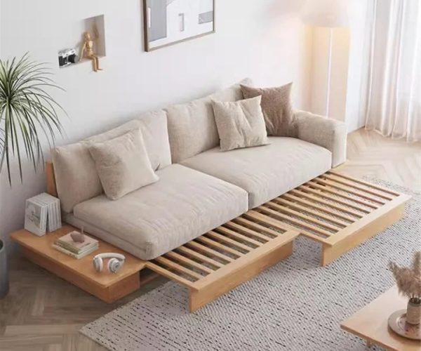 Giường thông minh kết hợp sofa sang trọng cho phòng khách là giải pháp nội thất đa năng giúp tối ưu diện tích mà vẫn đảm bảo tiện nghi. Sản phẩm vừa là một chiếc sofa hiện đại, vừa có thể mở rộng thành giường ngủ êm ái chỉ trong vài thao tác đơn giản. Với chất liệu cao cấp như gỗ tự nhiên, nệm êm và bọc vải sang trọng, giường sofa mang lại cảm giác thoải mái khi sử dụng và tăng tính thẩm mỹ cho căn phòng. Thiết kế thông minh cho phép lưu trữ đồ đạc bên dưới hoặc kết hợp các ngăn kéo tiện ích, giúp không gian luôn gọn gàng.