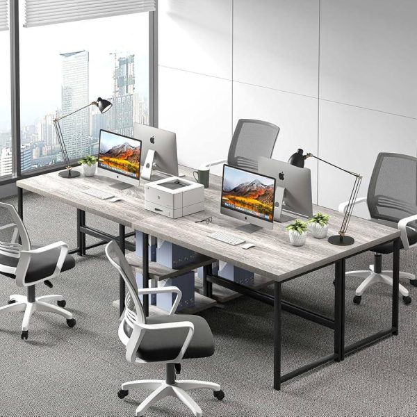 Bàn làm việc 4 người dạng chữ nhật thường có kích thước tiêu chuẩn dài 240cm, rộng 120cm và cao 75cm. Mỗi người sẽ có khoảng không gian riêng khoảng 60cm x 120cm. Đủ rộng để bố trí máy tính, bàn phím, tài liệu và các vật dụng cá nhân mà vẫn đảm bảo sự thoải mái khi làm việc.