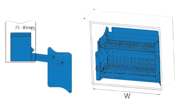 – Chừa khoảng cách vị trí bản lề tủ: nhiều khoang tủ bị vướng bản lề khiến giá bát không thể nâng/hạ, nên chọn giá bát nhỏ hơn 2 – 4cm so với lọt lòng khoang tủ