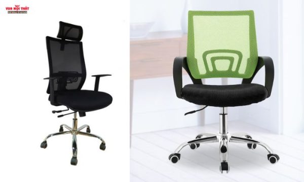 - Ghế xoay văn phòng lưng lưới: Đây là mẫu ghế được đa số dân văn phòng lựa chọn nhờ khả năng thoáng máy, hạn chế tích nhiệt khi ngồi lâu. Phần lưng ghế được làm từ lưới giúp lưu thông khí tốt, phù hợp trong môi trường làm việc công sở.