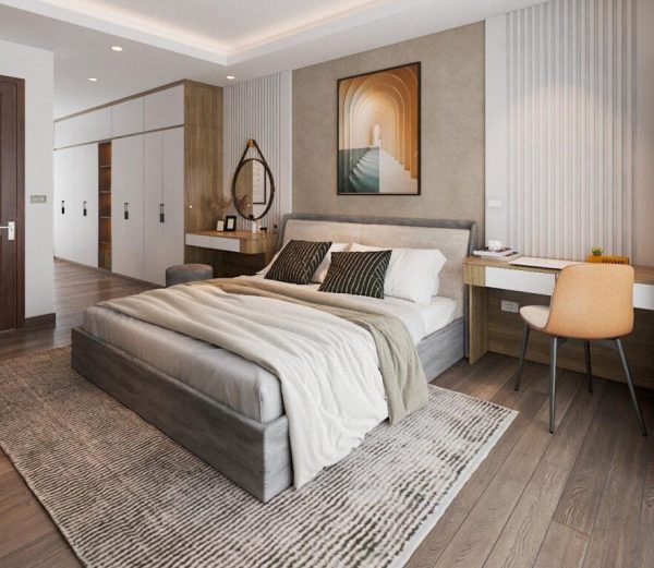 - Giường ngủ: Lựa chọn giường có khung chắc chắn và thiết kế phù hợp với phong cách.