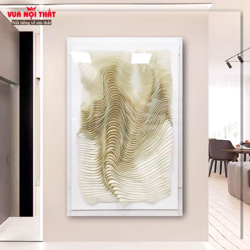 Tranh decor tường đơn giản hiện đại TT89 là lựa chọn lý tưởng cho những ai yêu thích phong cách tinh tế, nhẹ nhàng nhưng vẫn đảm bảo sự nổi bật. Với thiết kế lấy cảm hứng từ các đường nét uốn lượn mềm mại, tranh mang đến cảm giác chuyển động nhẹ nhàng, tạo điểm nhấn độc đáo cho không gian sống. Gam màu trung tính phối hài hòa giúp tranh decor tường TT89 dễ dàng kết hợp với nhiều phong cách nội thất khác nhau, từ hiện đại, tối giản đến sang trọng. Nội dung dưới đây, hãy cùng Vuanoithat tìm hiểu chi tiết về tranh decor tường hiện đại cao cấp TT89 được ưa chuộng hiện nay.