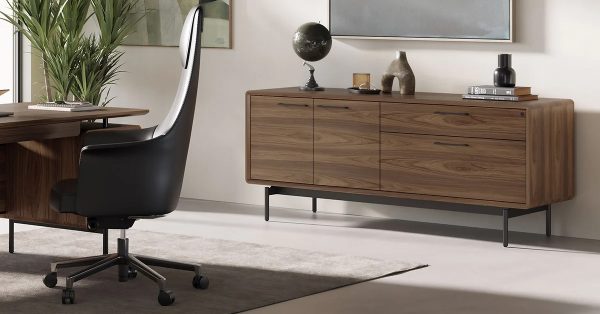 Tủ Credenza nổi bật với chiều cao thấp hơn so với nhiều loại tủ lưu trữ khác, thường đặt sát sàn hoặc chỉ nâng nhẹ bằng chân rất ngắn. Thiết kế kéo dài theo chiều ngang giúp tạo cảm giác không gian rộng rãi và thoáng hơn. Đặc biệt phù hợp với những khu vực cần sự cân đối về tỷ lệ như phòng khách hoặc văn phòng. Đây cũng là yếu tố giúp Credenza dễ dàng kết hợp với các món nội thất khác mà không gây cảm giác cồng kềnh.